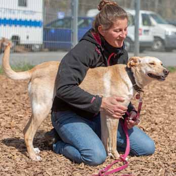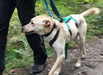 Anfangs kam die mittelgroße, hübsche Kaja nicht aus ihrer Hütte heraus, aber mittlerweile darf und kann sie in unserer Trainingsgruppe "Bravehearts" an ausgiebigen Waldspaziergängen teilnehmen, natürlich gut gesichert. Kaja ist gut verträglich mit anderen Hunden, kann aber auch bei Futter mal eifersüchtig werden. Mit Menschen ist sie eigentlich total nett und verschmust - bekommt manchmal aber auch Befürchtungen und friert ein. Ansonsten ist sie oft zu aufgedreht und muss runtergefahren, also beruhigt werden. Die neuen Besitzer sollten keine Anfänger sein, ein Zweithund muss nicht vorhanden sein - würde aber gehen.