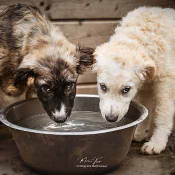 Zwei junge Herdenschutz-Mischlinge, sehr zutraulich, fröhlich und unbeschwert. Werden vermutlich etwas größer und brauchen ein gewisses Maß an Erfahrung mit diesen tollen Hunden.