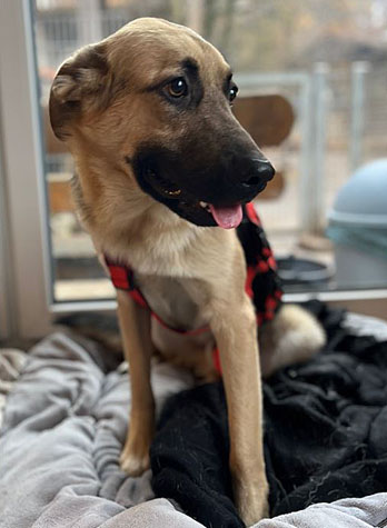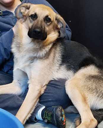 Schäferhund-Mischling Dug zeigte sich bei Ankunft noch sehr verschreckt, suchte aber gleich den engen Kontakt zu unserer Tierheimleiterin Justine. Mittlerweile ist er aufgetaut und lässt sich auch von allen anderen Menschen anfassen, vor allem, wenn diese Leckerchen für ihn dabei haben, er ist nämlich schrecklich verfressen. Das ist gut, Liebe geht durch den Magen sagt man ja auch. Dug ist ein wirklich hübscher mittelgroßer junger Hund, der schnell lernt.