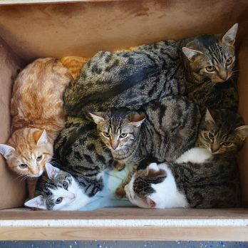 Unsere schüchternen bis sehr schüchternen Katzen sind alle Überbleibsel aus Kastrationsaktionen. Es stellt Tierheime immer vor große Probleme, wenn kastrierte Katzen nicht mehr in ihr angestammtes Revier zurück können und auch noch Nachwuchs mitbringen. Zurück können sie meist nicht, weil es zu viele sind oder der Ort nicht für Katzen geeignet ist. Aber leider sind sie meist sehr ängstlich und sehr zurückhaltend und es muss viel Überzeugungsarbeit geleistet werden.