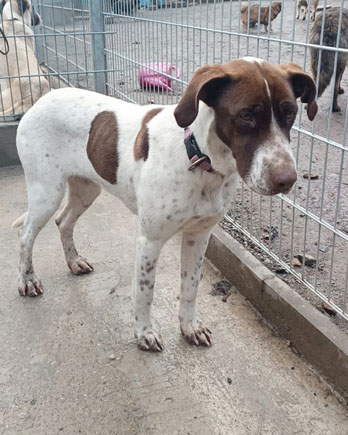 Ganz arg hübsche, liebe, aufgeschlossene Jagdhund-Mischlingshündin. Lessie mag eigentlich jeden Menschen und zeigt sich hier auch sehr gut verträglich mit Artgenossen. Lessie hat zur Zeit 29 Kilo.