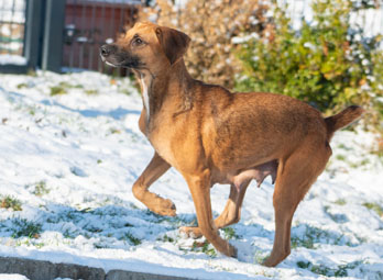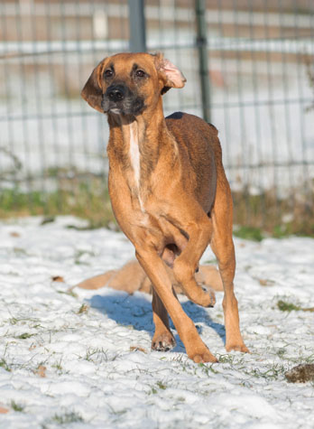 Unser Sonnenschein Tildi, wie sie hier liebevoll genannt wird, wurde hochtragend vor einem Tierheim in Italien gefunden und kam gerade noch rechtzeitig zur Geburt ihrer Welpen nach Deutschland. Was auch immer vor ihrem Fund war, das alles hat sie sehr mitgenommen. Um die Kleinen hat sie sich dennoch liebevoll gekümmert und sie bestens umsorgt. Als die Welpen langsam selbständiger wurden, konnte sie sich auch mal ein bisschen um sich kümmern und man konnte zusehen, wie sie aufgeblüht ist. Jetzt tobt sie gerne durch Haus und Garten und junghundetypisch fällt ihr allerhand Blödsinn ein. An der Leine läuft sie schon super, am Rückruf arbeiten wir gerade noch, mit der Schleppleine klappt das schon sehr gut. Sie ist ein toller Jogging-Begleiter, liebt aber mindestens genauso sehr das Chillen auf der Couch und kann dann auch ganz schön laut schnarchen.