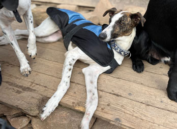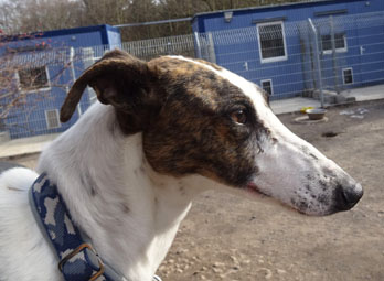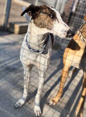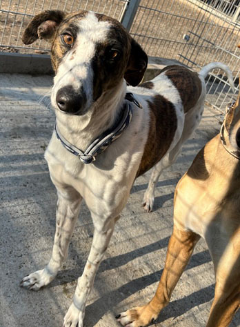 Keisha ist vermutlich ein Magyar Agár, das sind ungarische Windhunde. Die hübsche Hündin ist ganz arg freundlich zum Menschen und gut verträglich mit anderen Hunden.