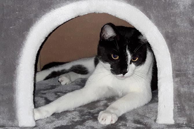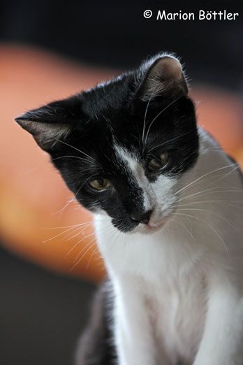 Als kleiner Babykater kam Benedikt zu TiNO und wurde mit einer Lungenentzündung sehr krank. Doch der kleine Kerl hat sich ins Leben zurückgekämpft und durfte auf eine Pflegestelle umziehen, um wieder ganz gesund zu werden. Ohne Folgeschäden blieb die Krankheit jedoch nicht, es wurde bei ihm eine Lungenfibrose (das ist eine bindegewebige Veränderung) festgestellt. Dadurch ist er anfälliger für Atemwegserkrankungen, hat öfter mal einen Hustenanfall und Schwierigkeiten beim Atmen.