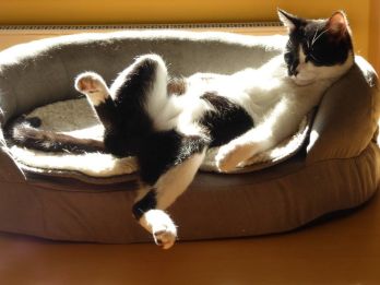 Bei Benedikt ist nicht jeder Tag wie der andere. Es gibt tolle Tage, blöde Tage und ganz blöde Tage, an denen es dann doch spontan zum Tierarzt geht. Um Benedikt weiteren Stress zu ersparen darf er deshalb als Patentier auf seiner Pflegestelle bleiben. Und wie man sieht, ist er dort richtig entspannt und stressfrei: